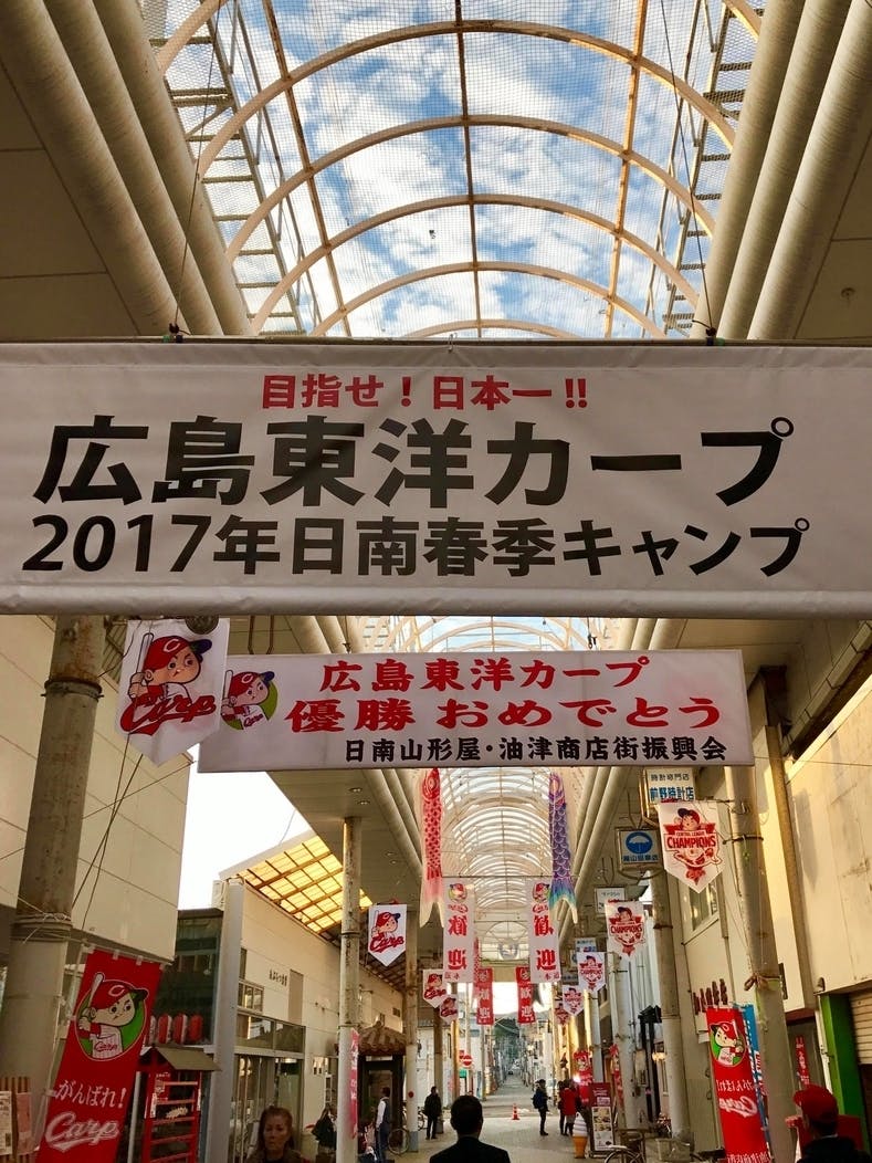 日南市油津は、広島東洋カープが1963年から一貫してキャンプを行ってきた場所。 この長い年月が選手と地域の皆さんとの深い絆を育み、まちのいたるところに往年の名選手や現役選手の足跡をみることができます。