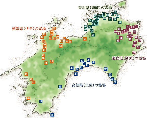 八十八ヶ所の霊場寺院を結ぶ道を遍路道といい、全長1100-1400km程度あります。