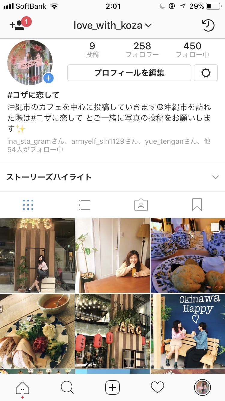 ▲インスタグラムのアカウントページ