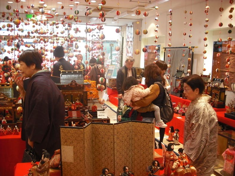 最初は、代々受け継がれてきた貴重な「雛人形」が子供の成長により飾られる事がなくなり「もったいない」「せっかくの素晴らしい品を見ていただきたい」との思いから、老舗店舗が多い商店街の催しとしてスタートしました。当初は参加店が30店ほどと少ないものでしたが、戦前から古くは明治といった歴史のある品や、情緒たっぷりの「御殿びな」、珍しい「男雛」、津山独特の「ねり天神」といった、まさしく城下町の歴史に触れる内容だった為、多くの方に喜ばれるイベントになりました。