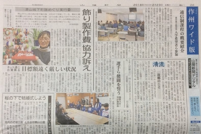 今朝の「山陽新聞」様の朝刊 作州版にこのプロジェクトの記事が掲載されました。