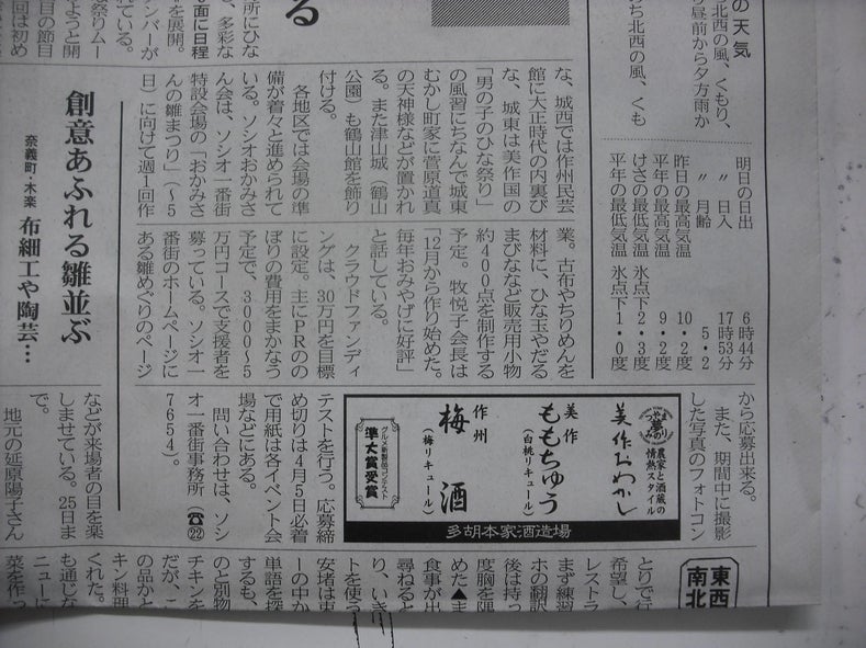 津山城下町雛めぐり の準備をすすめるメンバーが新聞に載りました (津山朝日新聞 さん ありがとうございます)