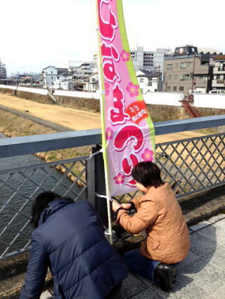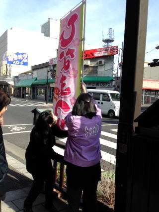 今ある「のぼり」は 販促用の既成品(よく「人形の〇〇」とかいうお店の前に立っている物)で数も限りがあり駅とその周辺の分しかありません・・・