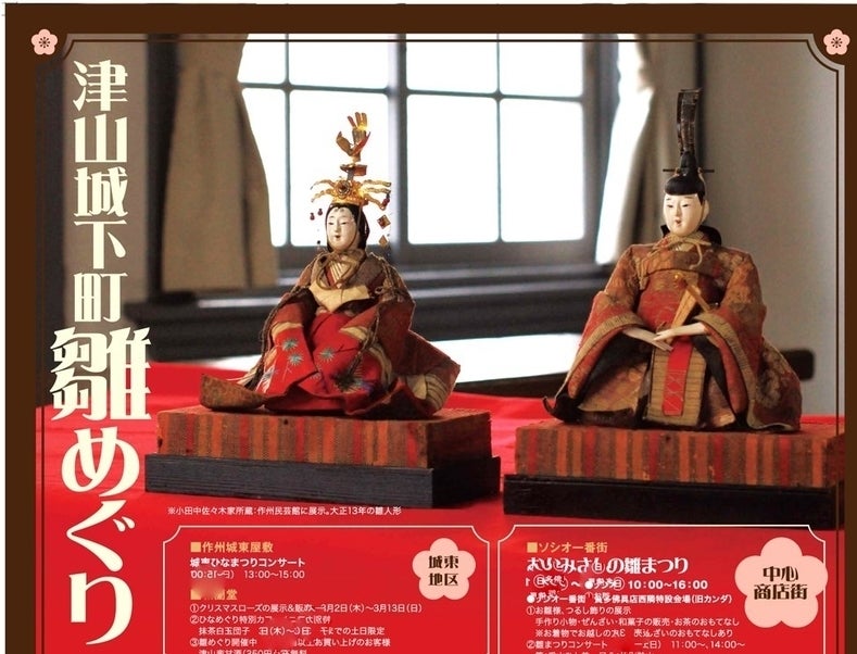 昨年のポスターは 城下町津山の象徴 津山城址の「備中櫓」で撮影させてもらったもを、更に一昨年は城西地区にある大正ロマンあふれる建物「作州民芸館」で撮影した写真を使って、雛めぐり津山らしさを感じていただくようにしています。