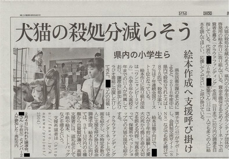 先日の譲渡会で四国新聞さんに取材していただき、3/2号に記事が掲載されました。