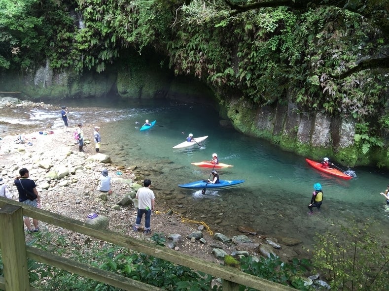 しゃくなげの森リバーパークで、ヤマメ釣り、ヤマメつかみ取り、流しそうめんのほかに、川遊び安全教室、カヌー体験教室がある。8月の多い日は800人の来場者でにぎわいます。