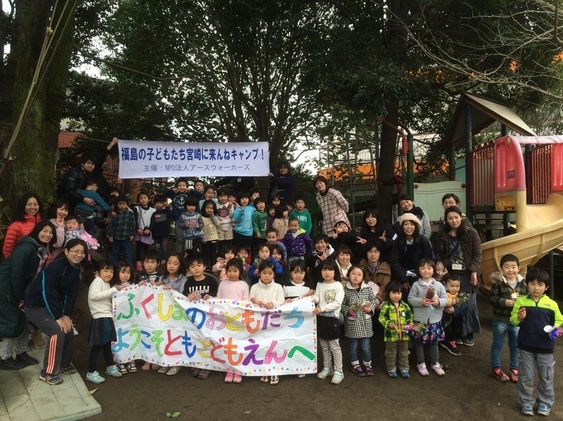 こんにちは! 特定非営利活動法人アースウォーカーズで事務局スタッフをしている宮崎大学1年の木村です。わたしたちは東日本大震災の支援活動の一環として、「福島の子どもたち宮崎に来んねキャンプ!」という活動を毎年実施しています。このキャンプは、福島の子どもたちを宮崎に招待し、宮崎の豊かな自然の中で思いっきり遊んでもらい、心身ともにリフレッシュしてもらう保養キャンプです!
