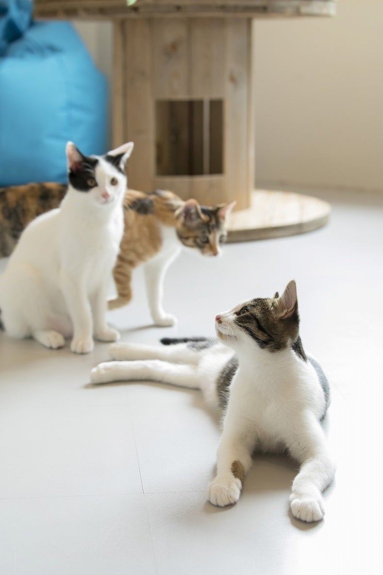 ▲前画像の3匹です。猫カフェでのびのびと暮らしながら、たくさんのお客様を楽しませてくれました。今ではみんな優しい里親さんたちの元で暮らしています。