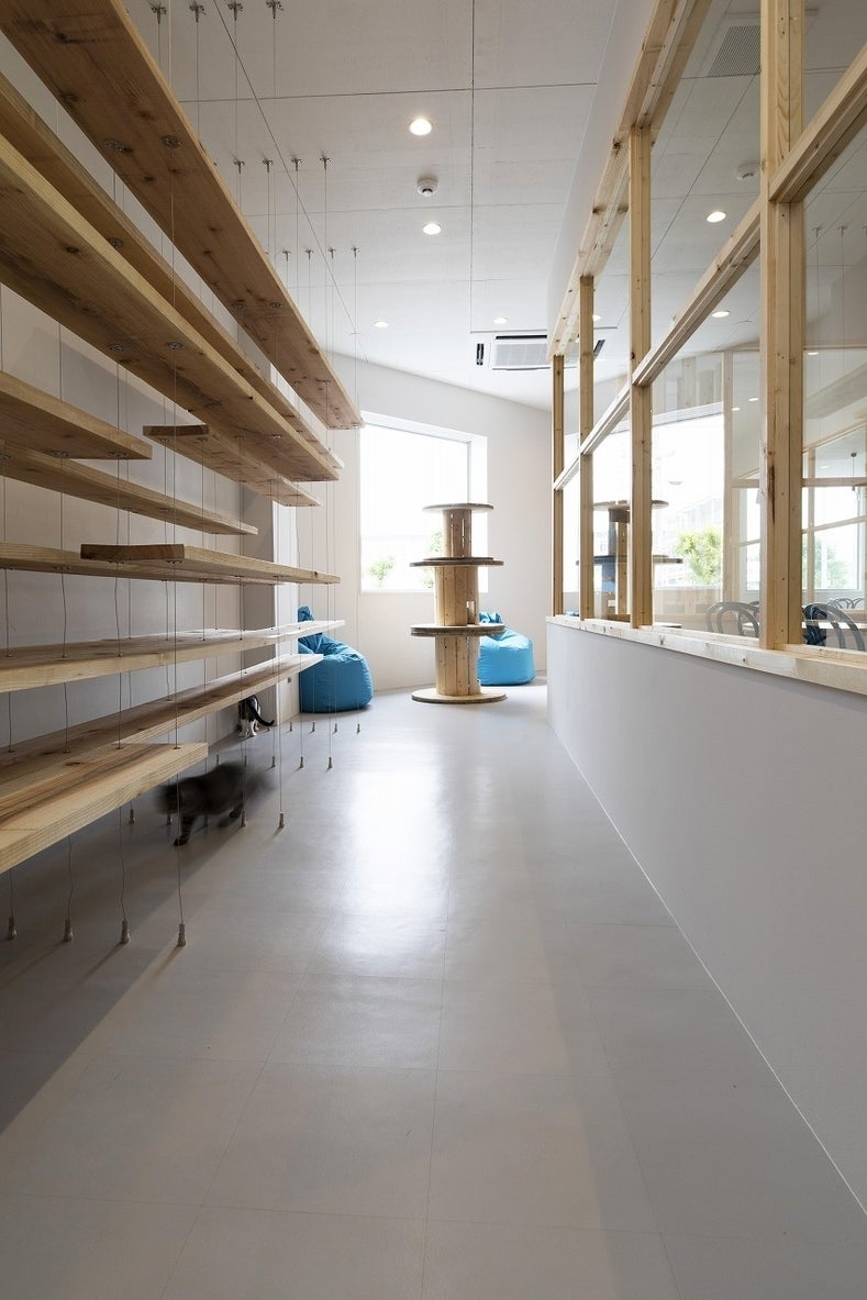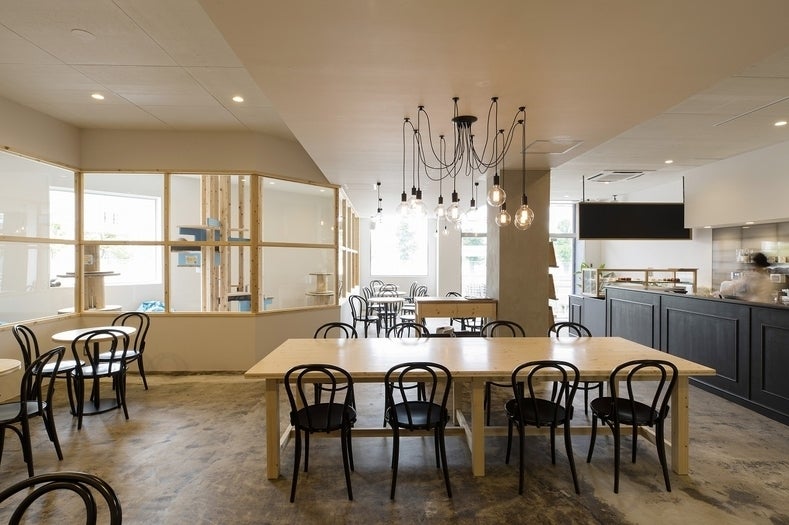 猫カフェという業態は利用する方がごく限られており、しかも平均利用頻度の少ないことが統計により分かっています。一般的な猫カフェは猫ルーム(猫と触れ合うためのスペース)が店舗の大半を占め、カフェスペースはオマケ程度のお店がほとんどです。そこでブルーキャットカフェでは、猫ルームとは完全に分離した本格的なカフェを併設することにより多くの方にカフェとして気軽に利用していただけるよう工夫しています。もちろん、猫ルームに入って猫たちとたっぷり遊んでいただくことも可能です。これにより、たくさんの方が猫たちを見て、触れ合い、里親探しが円滑に進むことが期待できます。