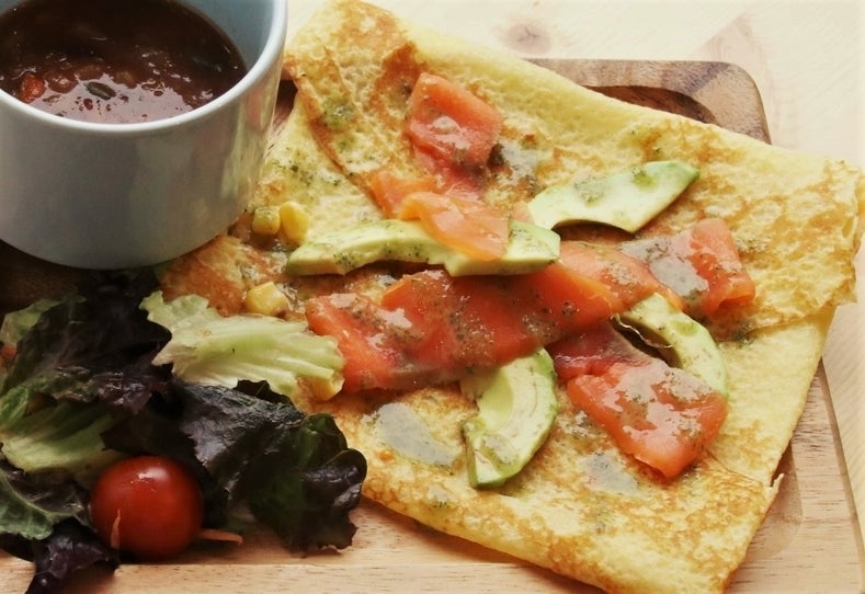 ▲ランチは3種のガレットランチからお選びいただけます。米粉の生地で作っているのでモチモチした触感が特徴です。