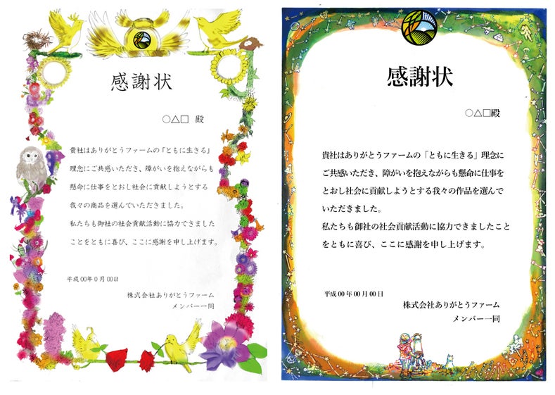 メンバーデザインの感謝状に手描きのメッセージを添えさせていただきます。