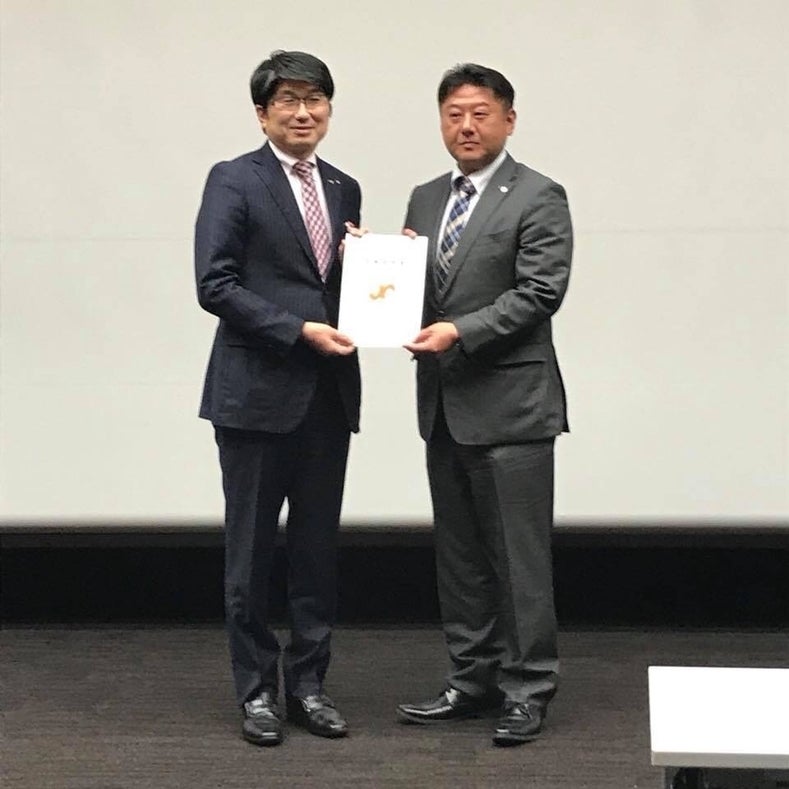 田上市長(右)と長崎YEG平成29年度 後田会長(左)