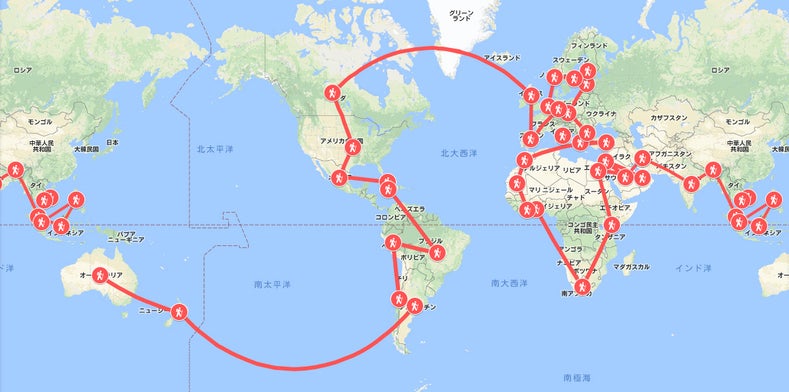 旅のスタートは、関西国際空港からベトナム・ノイバイ国際空港へ。ベトナムから西回り、1年間で5大陸43ヵ国を訪問予定です。 東南アジア、中東アラブ、アフリカ、欧州、北米アメリカ、南米アルゼンチン、オーストラリア、そしてニュージーランドを旅します。