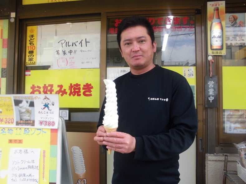 お好み焼きマツダの通り、お好み焼きもやっているのでアイスを食べに来たら応援ついでに店内にも来て下さい。