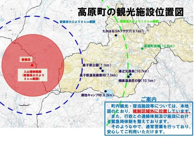 4月8日現在、新燃岳から3kmの範囲に規制がありますが、そこから、人が住んでいる地域までは十分な距離があります。