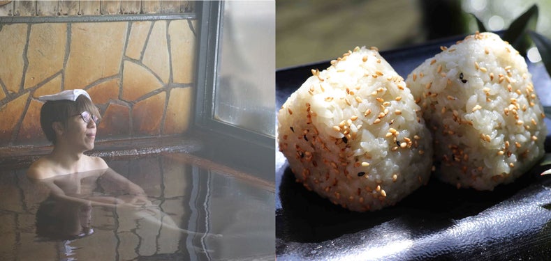 ここの温泉の名物は、火山の恵みでもある温泉水を使った「鉱泉おにぎり」です。