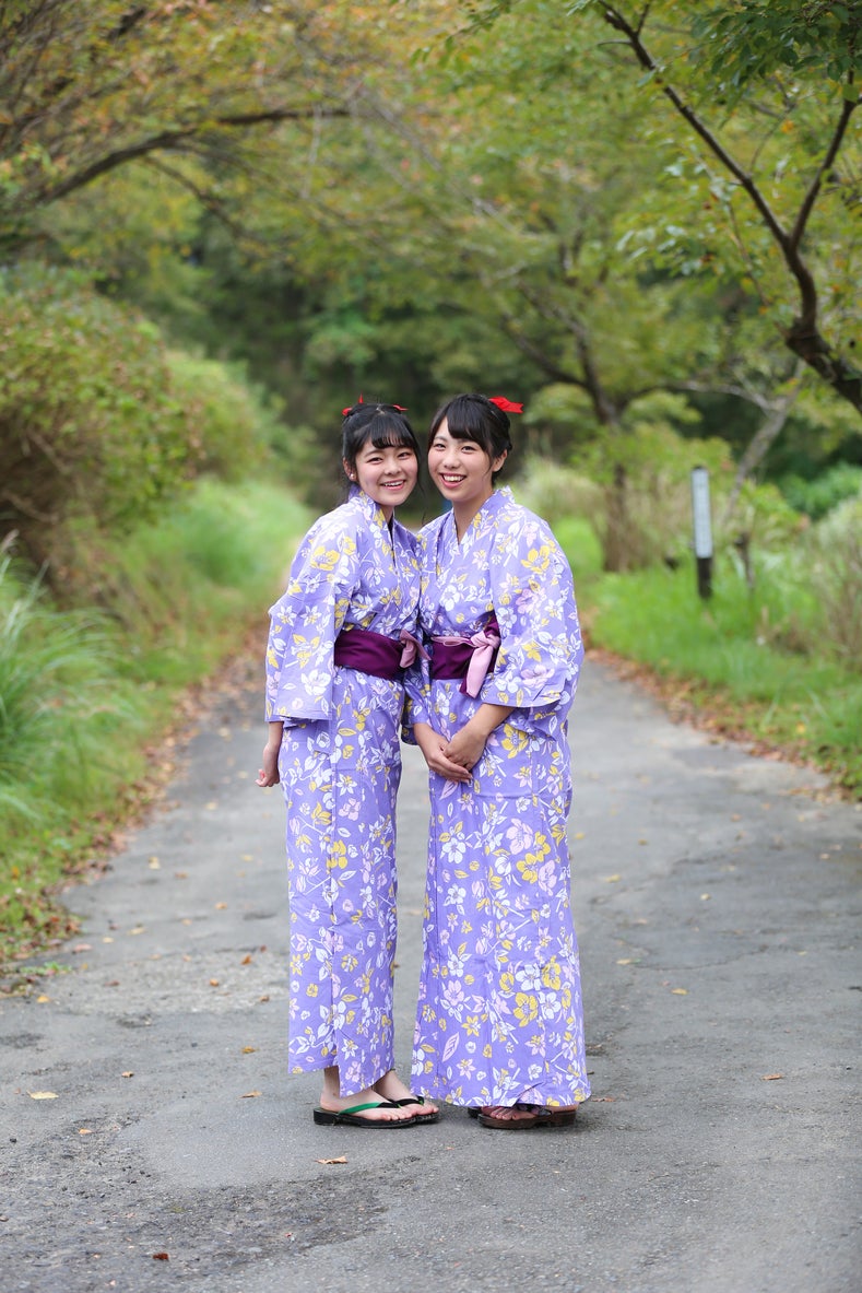 ご宿泊のお客様は紫かピンクか、どちらかの色浴衣を選んで着用いただけます。