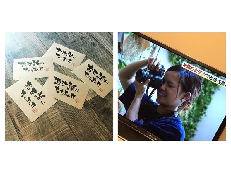 屋嘉舞さんは写真以外にもハンドメイド作家や書家としての才能も