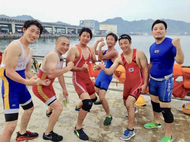 がぶり返しは、レスリングの元宮崎県代表選手で構成されたチームです。チーム名は、レスリングの技の名前であり、逆転を狙う時など、「ここぞ!」という際に、よく繰り出す技です。がぶり返しは、平成26年に弁甲競漕大会初出場し、当時6連覇を目指す強豪を破り、初優勝を達成しました。