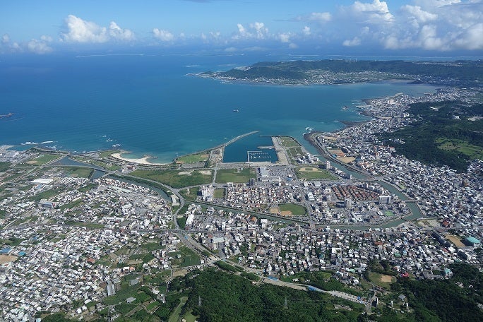 ▲空から見た与那原町 沖縄本島で一番小さな町なんです!