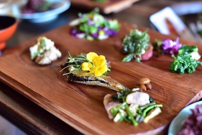 まだ農村回帰の珍しかった30年前、私は東京から高松に移住。家族に新鮮で安全な野菜を食べさせたいと野菜を作り始め、12年前から男木島で無農薬無肥料野菜を育てています。現在はその野菜や果物を使って栄養バランスのよい食事「蘇の膳」や、男木島の「野草ジュース・シャーベット」など他にはないデザート類をお出ししたり、「男木島生活文化体験」を築100年の古民家で提供する、カフェ兼「体験民宿」を運営。男木島の豊かさを皆さんとシェアしたい!と活動しています。