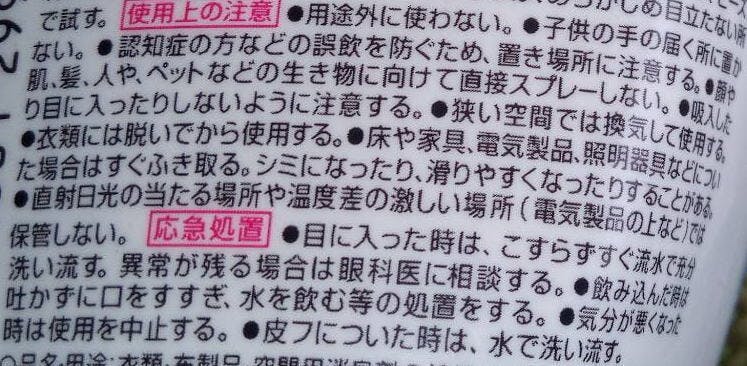 今、お使いの空間用消臭スプレーの裏書を注意深く読んでみてください。