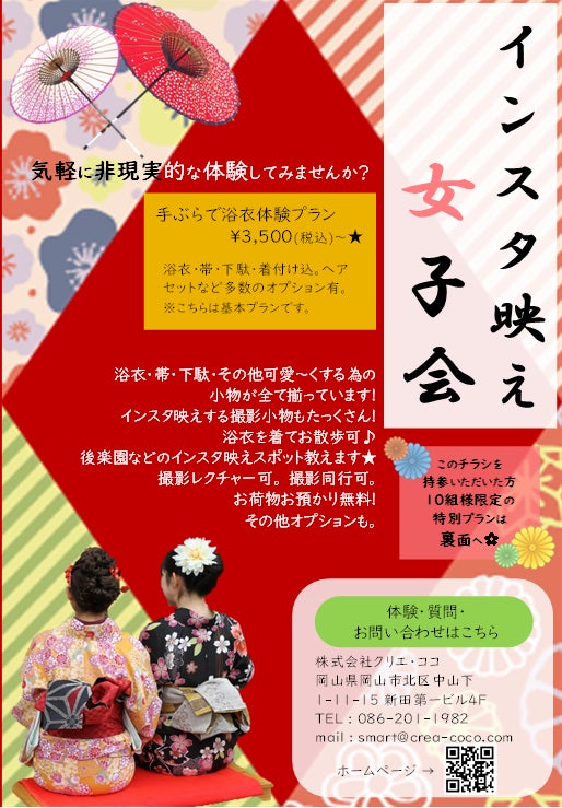 インスタをしている女性向けに作成したチラシがありますので、こちらをご覧いただくとイメージしていただきやすいと思います。