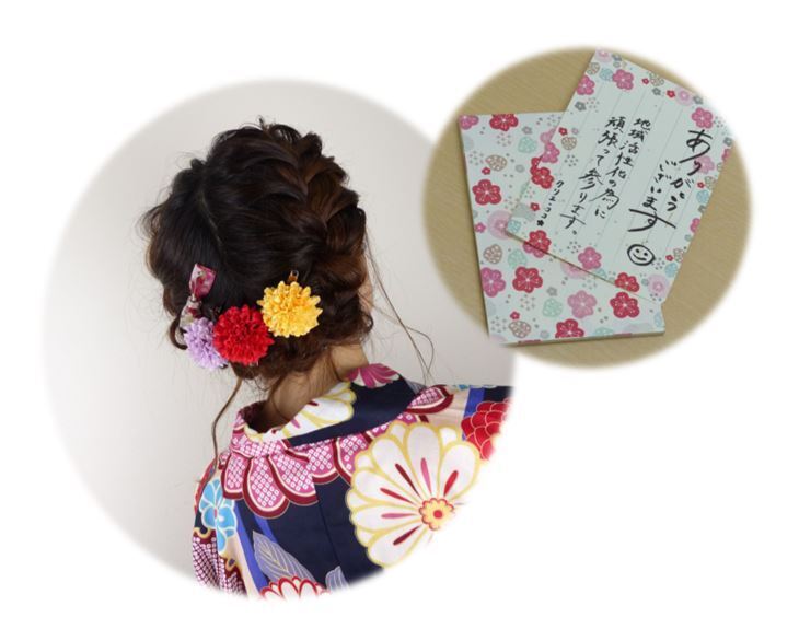 ※ヘアセットやヘアアクセサリーにつきましては、オプションでご注文いただきますようお願いいたします。