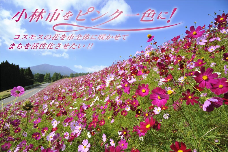 小林市の市花コスモス。市内の飲食店やスイーツ店、観光施設など、さまざまな地元企業がコスモスをモチーフにした商品を開発し販売しています。また、小林市の観光名所と言えば生駒高原です。秋には毎年コスモスまつりが開催され、約100万本のコスモスが地元住民や観光客を魅了しています。小林市は昔からコスモスを大切にし、共に歩んで来たのです。この愛する小林市のコスモスをもっと知ってもらいたい、もっと多くの方に見に来て頂きたいと考え、コスモスシーズンである9月~10月にかけて市内のさまざまな場所にコスモスを咲かせ、小林市を盛り上げようという思いから、小林コスモス一色プロジェクトが誕生しました。