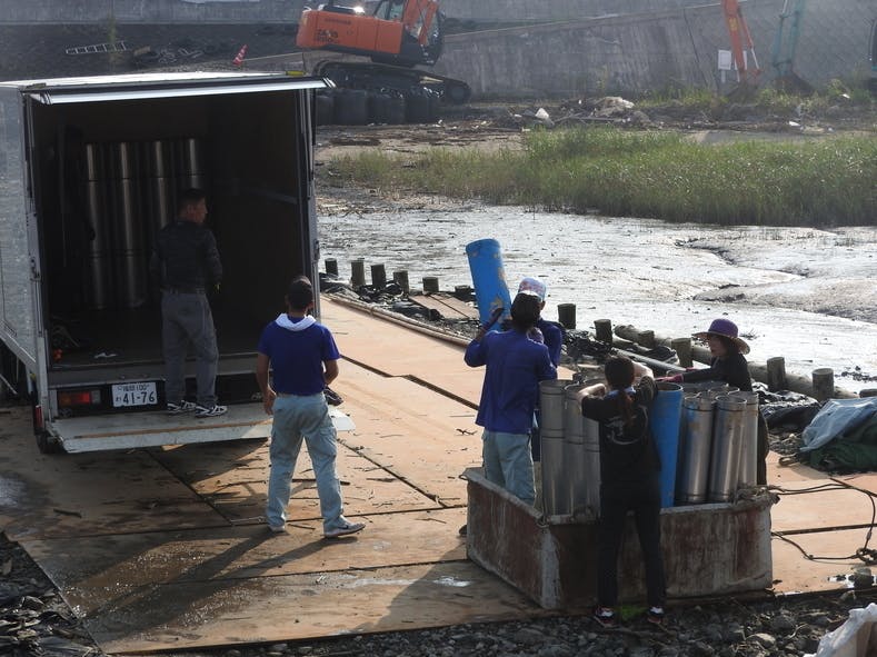 ▲2017年は柳川の久間田漁港にて積み込みを行いました。