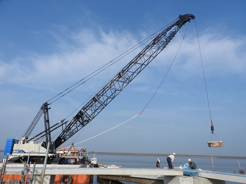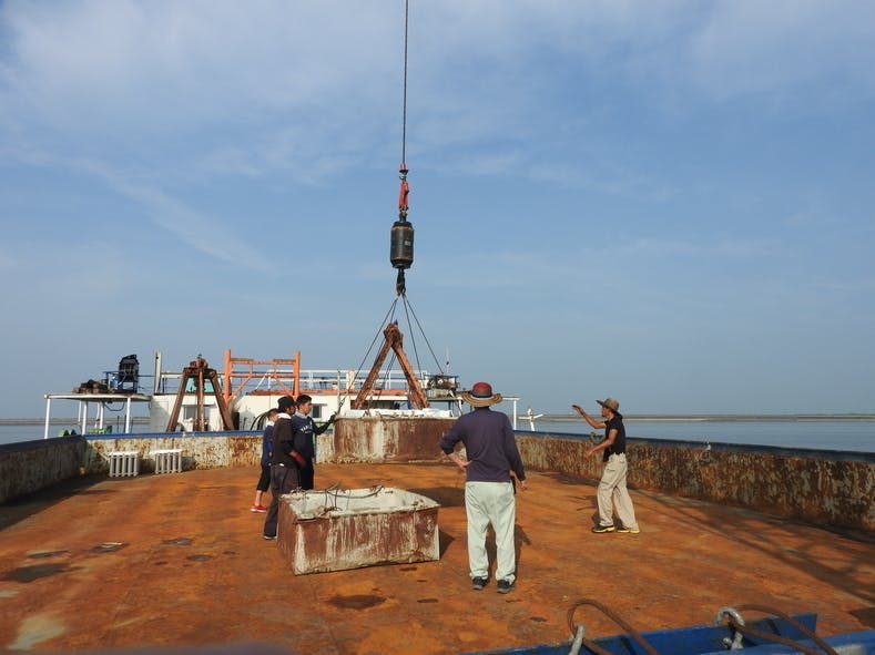 海上での花火打ち上げには台船を用います。有明海は潮の干満差が大きく、台船への花火積み込みの場所や時間帯をしっかりと計画して行わなければなりません。