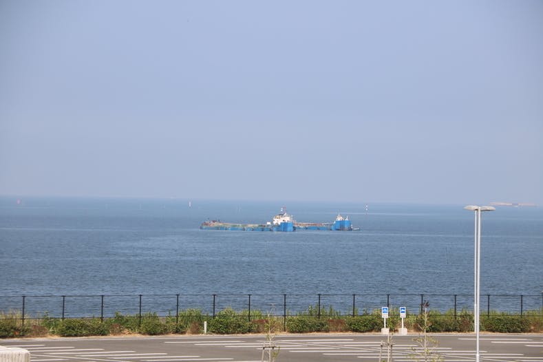 有明海では最大で6~7mの干満差が生じるところもあります。上の写真を見ても分かるように、干潮時には海底が見えるほどに潮が引くため、花火打ち上げの台船を会場近くに設置するにも時間調整が必要となってきます。