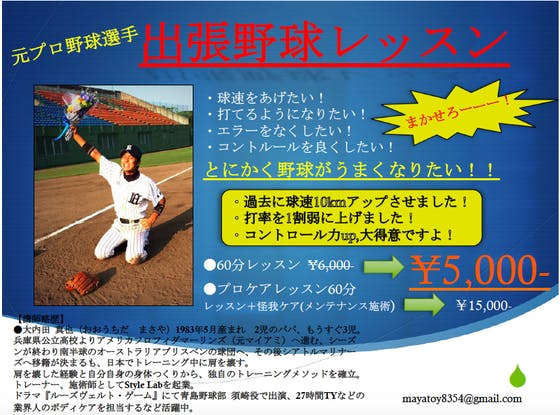 私の今までの野球人生の経験と知識を活かして、子供達が将来、野球選手として活躍できるような手助けができればと思っています。 ぜひ、ご協力よろしくお願いいたします。