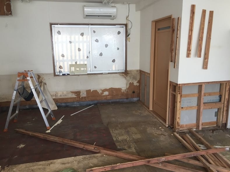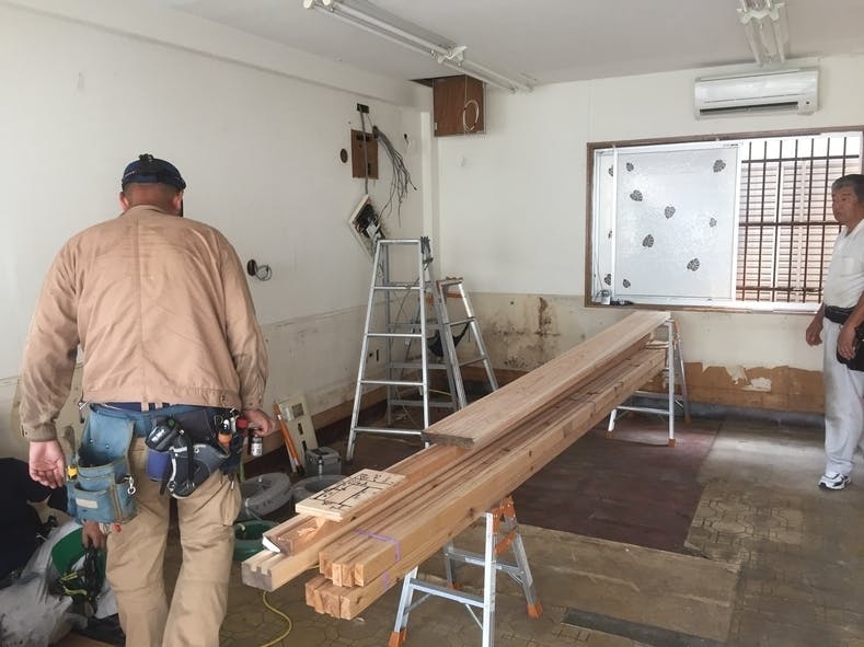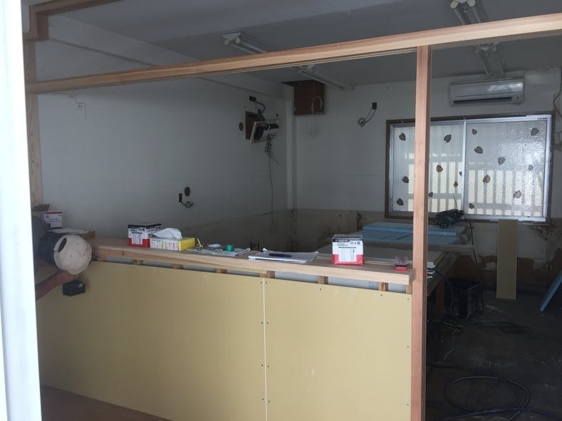 宮崎市内での店舗工事の経験豊富な工務店さんにお願いし、内装工事・水道・ガス・電気関係を打ち合わせしつつ工事をしています。