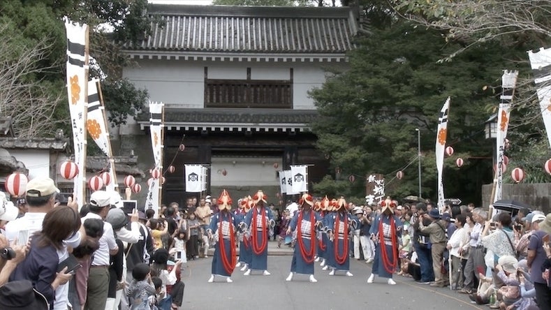 飫肥城跡の大手門で郷土舞踊「泰平踊」の披露