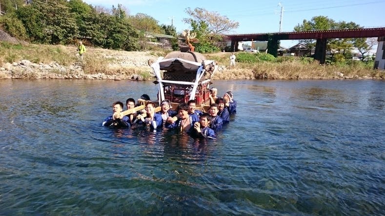 ↓11月に開催される立磐神社例大祭の神輿の川渡りです。