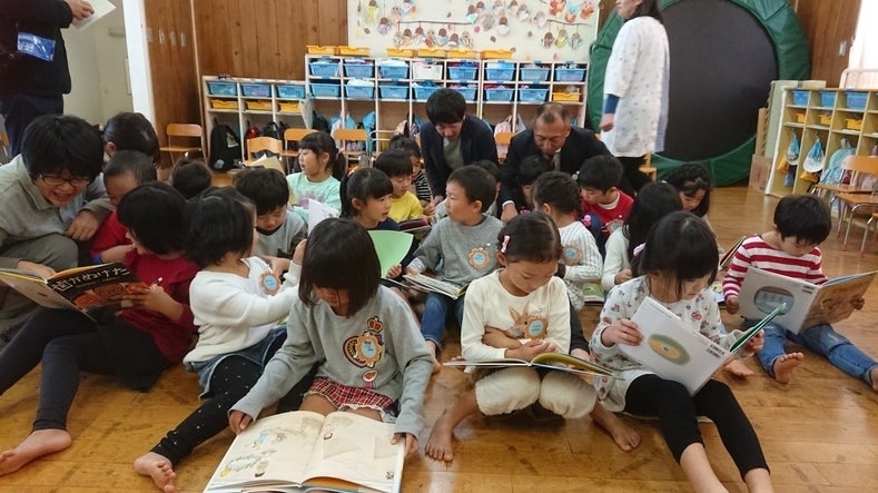子どもたちに絵本を見せた際に大きな歓声が上がり、熱心に絵本を読みふける姿が