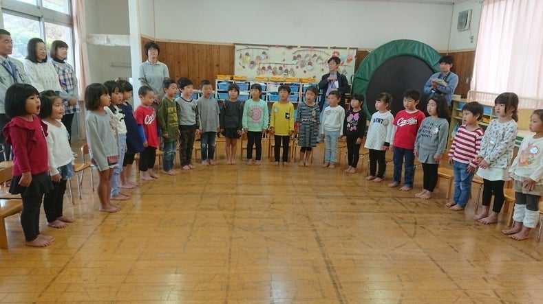 寄贈式の最後には、子どもたちから歌のプレゼントをもらいました。