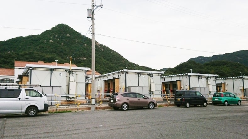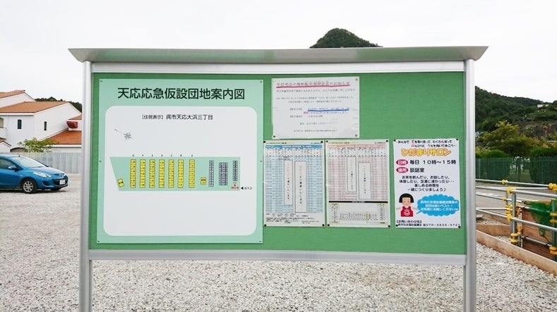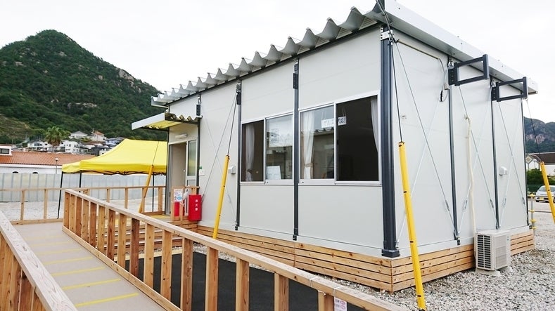 天応地区の仮設住宅は、呉ポートピア駅近くの海沿いに建てられております。