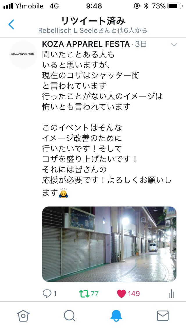 イメージがあるそうです。そのため今回のKOZA APPAREL FESTAを通してこれまでのイメージを取り払い、多くの若者にコザの街の魅力を知ってもらえるように、実際に足を運んでもらえるきっかけづくりをしたいと思います。
