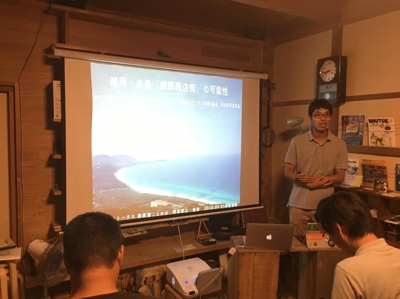 =========== <クラウドファンディングは、「9/22(土曜)」まで!ご支援、シェア&拡散お願いします!> ↓【地元の木材とみんなで作る商店街ベンチ】まちに新しいコミュニティを創る! https://faavo.jp/fukuokachuou/project/3081 =========== みなさん、こんにちは! 「前原(まえばる)もっと楽しもうプロジェクト」の野北です。 福岡県糸島市の「もり」と「まち」を、みんながデザインしたベンチが繋ぐ、今回の企画。 お時間あれば、どうぞご一読よろしくお願いします。 ~~~~~~~~~~ 前原の商店街についての講演を行ってきました! 9月5日に熊本の長洲町(大牟田市のすぐ下あたり)に、糸島の前原商店街の講演をしにお出かけしてきました。 貴重な機会を頂き、ありがとうございます! これは今年の11月に開催される福岡DIYウィークの一環で行われたプレイベントです。 福岡DIYウィークとは、DIY(自分で大工仕事などをやって改装などを行うこと)で、個性的で素敵なお店や商店街が、小資本ながらも各地に誕生しつつあるのを、全国にPRする目的で毎年行っているイベントです。 全国的な注目度も高く、この日は、私も含めて、九州各地から5名の登壇者が長洲町のおしゃれなカフェ「あゆたり」さんでお話しました。 みなさん、リノベ界隈では本当に有名な方々ばかりなので、私は恐縮でした。(といいつつ、持ち時間オーバーで話してしまいましたが。笑。) ちなみに長洲町は、造船と金魚で有名な街です。今でも日立系の造船を行っているので、海外から技術を学びにくる学生や商談で訪れるビジネスマンも多い、とても興味深い街でした。 ↑本当に多くの方にご参加頂けました。 びっくりしたことにここに集まった半数以上の方が「糸島」に来たことがあるとのことでした。 昔はただの田舎だと思っていたのに、本当にすごいことです。 ベンチは人と人、前原と糸島全体を繋ぐ! 前原商店街について考える時に、糸島全体との関係をしっかりと捉える必要があります。 糸島全体でいえば、以下のような課題があります。 ・車でアクセスが基本で、お酒が飲みにくい ・地元の人が集まれる場所が少ない 糸島は様々な魅力が広い範囲に点在するのが魅力ですが、逆をいえば、一箇所で集まれる場所が少ないということ。 前原商店街は、糸島全体を繋ぐ「ハブ」になれる可能性があるのです!! そして、商店街でいえば、以下のような課題があります。 ・商店街の店主が高齢化&後継なし ・古い建物は更地へ!? 商店街は、江戸時代の宿場町に由来する歴史を引き継ぎながらも、現在の風潮(=建物をそのまま残していても、誰も買い手がつかんから、更地にせんとね〜)を変えていく必要があります。 地味ですが、そのためには、多くの人に前原に足を運んでもらって、「前原面白い!」と感じる人を増やす必要があります。 そして、前原で「人」と「人」が繋がるような流れが必要です。 ベンチを各所に置くのは、ただ足を休めるだけではなくて、人と人を繋ぐ重要な役割を担っているからです。 やはり、みんながそれぞれ休むことなく動き回っていると、出会いや話しかけるタイミングは少なくなります。 ↑熊本・長洲町での一コマ。駄菓子屋のベンチに子供達がいるから、私たちは話しかけるチャンスがあった! 上記の写真は、とある駄菓子屋の風景です。 軒先にベンチが置いてありますね。 軒先で子供達がお菓子を買って食べているわけですが、そこにほんの5分、10分でも滞留しているからこそ、私たちは話しかけ、交流する機会を得られたのです。 「こんにちは。何食べてるの?」とか、「よくここには来るの?」とか、気軽に話しかけられます。 もし、ベンチがない状態を想像してください。 彼らは歩きながら食べていたでしょう。 私たちも別に動いているわけですから、出会う確率はぐんと減って、上記のような会話はきっと生まれなかったでしょう。 「ベンチがない状態」とは街に会話を生まない状態なのです。 それに気づいたニューヨーク市は、コミュニティや治安改善を目的に、まちなかになんと2000台のベンチを置こうとしています。 デンマークのコペンハーゲンや、台湾でも同様の動きがあります。 日本は、管理が面倒だからと、まちかどベンチを撤去する方向で動いています。 世界の流れと逆行しています。 本当に残念です。 ただ、行政が管理するので、管理費など理解できる側面もあります。 だから、私たちの計画では、私たち民間が主導で、民間の敷地内(=軒先)にベンチを設置する計画です。 基本的に、行政にも、道路を管理する警察にも迷惑にならないようにと思ってやっております。 ただ商店街にベンチを置くだけですが、試み自体は日本最先端だと思っております。 そして、この動きが前原商店街だけでなく、糸島中に、全国中に広がっていって欲しいと思っております。 ↑アメリカ・セント・ピーターズバーグの約100年前のイラスト(引用元:建築家・大西正紀さんのNOTEより) 上のイラストは衝撃的ですが、100年以上前の、ア
