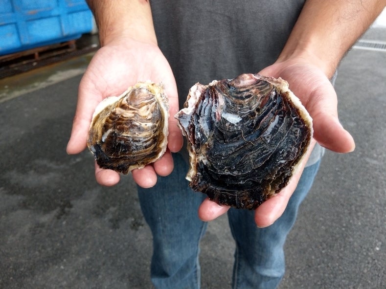 ※日向市ブランド細島いわがきの規格外と規格内の比較画像