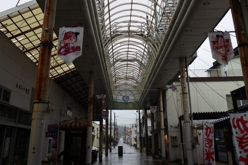奇跡の再生を遂げたと言われる油津商店街ですが、2013年の台風から始まり、その後の度重なる台風の影響で、現在ではアーケードの大部分の屋根がない状態になっています。そのため、本来の雨をしのぐ機能は果たせておらず、雨が降ると客足も途端に少なくなってしまいます。