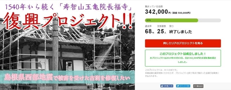 5月3日に長福寺復興プロジェクトのクラウドファンディングが終了いたしまして、