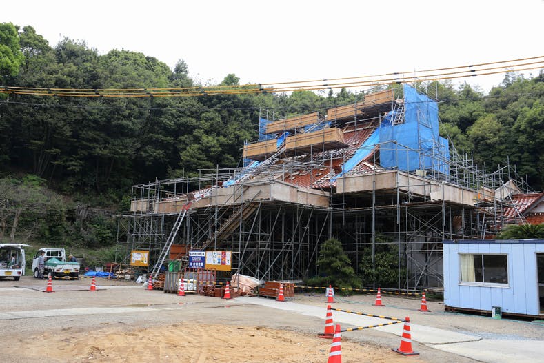 県内外の沢山の方々にご協力を頂き、本堂や池の石垣の修繕、経堂の解体工事が着々と進んでおります。