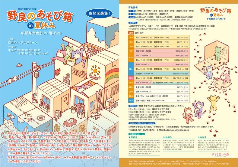 「夏休み」を利用したこの方法を、県内にとどまらず全国各地の文化施設、教育機関、NPO法人等に届けたいと願っています。加えて、短編映像をSNS等のインターネットでも流します。その結果、この試みが広がることを願っています。
