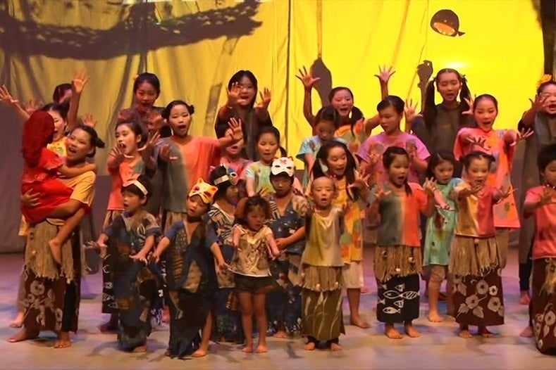 保護者も空いている時間を使って衣装や舞台美術をつくったり、影絵や楽器を子どもと一緒につくったりして舞台づくりに参加します。子どもだけではなく大人も「つくる」楽しさや達成感を感じることができる舞台です。