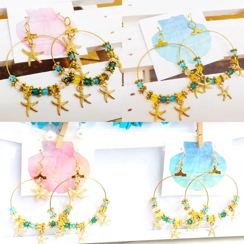 6番:ヒトデ×クリスタルビーズ フープピアス