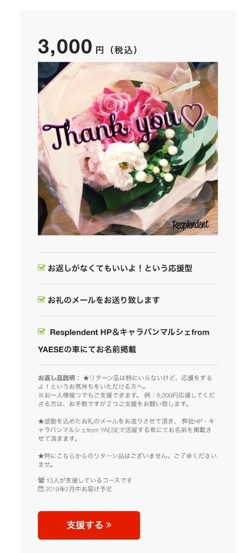 プラスご支援(500円から追加できます)でご支援頂く方が増えているので、