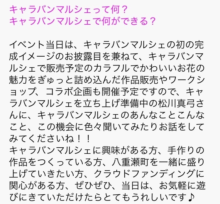 キャラバンマルシェでは、委託販売で承れない『食』の商品を扱われている方々や、ハンドメイド以外で活動されてる方々と、定期的なコラボイベントも開催していくんですが、
